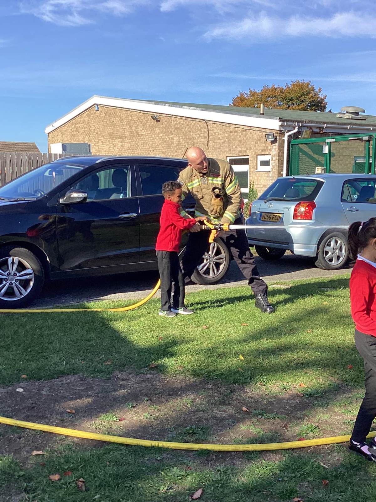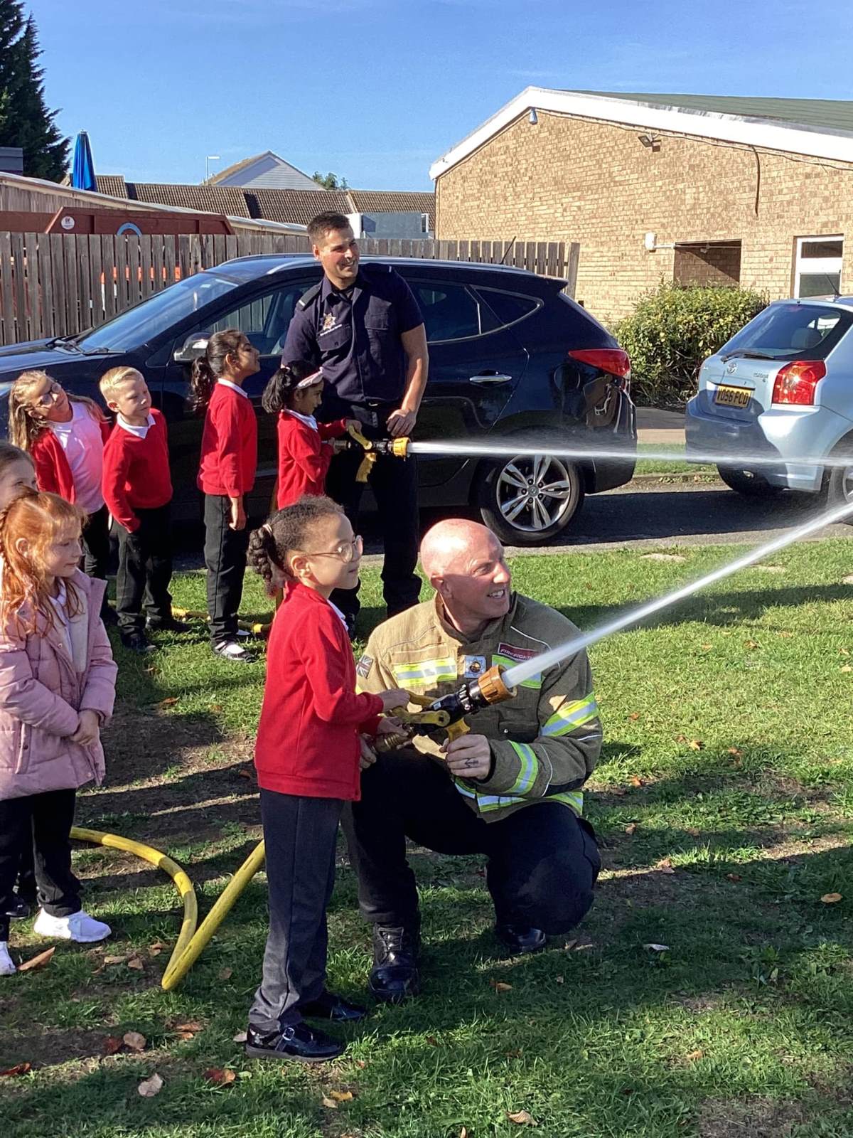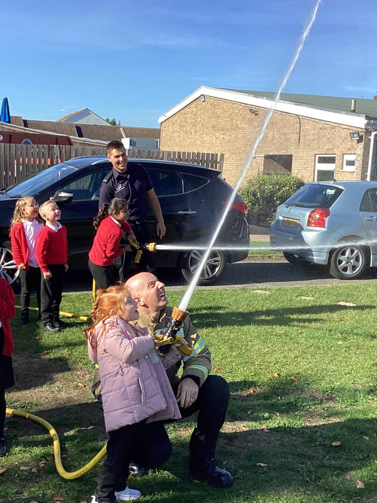 After learning some important fire safety messages, the children had a brilliant time using the hoses to spray water!