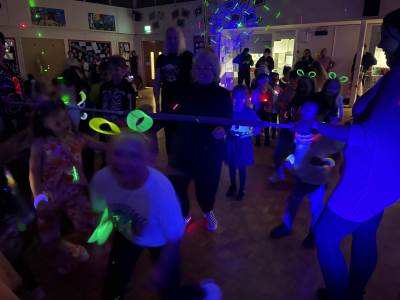 Children (and grown ups) had a fantastic time at our Glow Disco. Plenty of dancing and glow sticks! There were even dance competitions and a very competitive limbo!